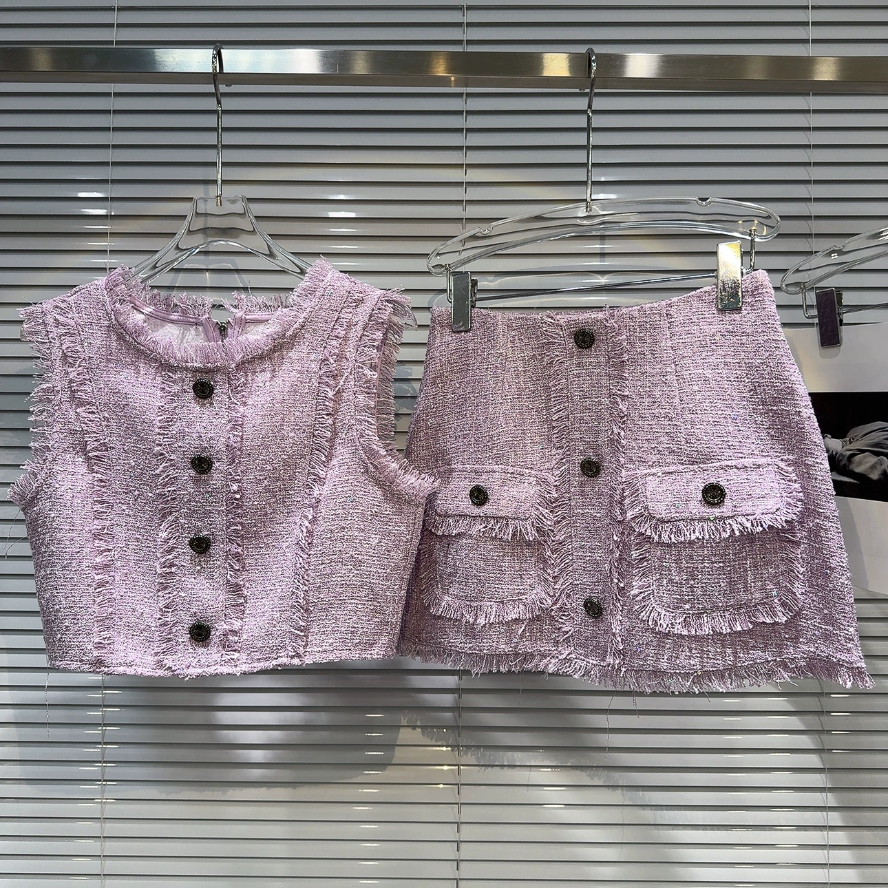 سترة بدلة تنورة من التويد ذات حافة خام للمشاهير على الإنترنت