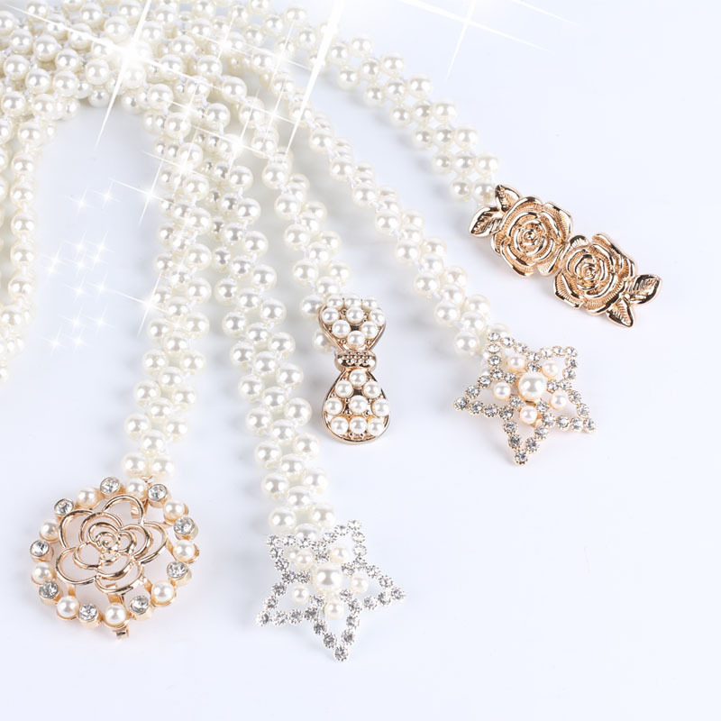 متوفر في المخزون حزام لؤلؤي طويل للنساء مقاس كبير من اللؤلؤ المرن المزخرف بسلسلة خصر وإكسسوارات حزام زخرفي