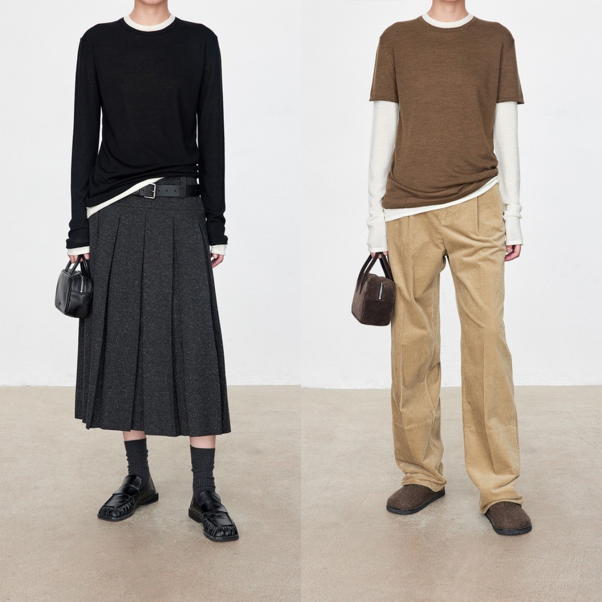 التراص الرياح ~ JOC الصوف البكر محبوك وهمية قطعتين اللون مطابقة طبقة مزدوجة الرقبة المستديرة تي شيرت فضفاض كومة الأكمام أعلى المرأة