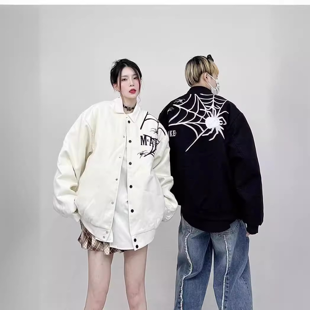 بدلة بيسبول أصلية مطرزة على شبكة العنكبوت للربيع والخريف من قماش أكسفورد سترة أمريكية عالية الشارع للزوجين
