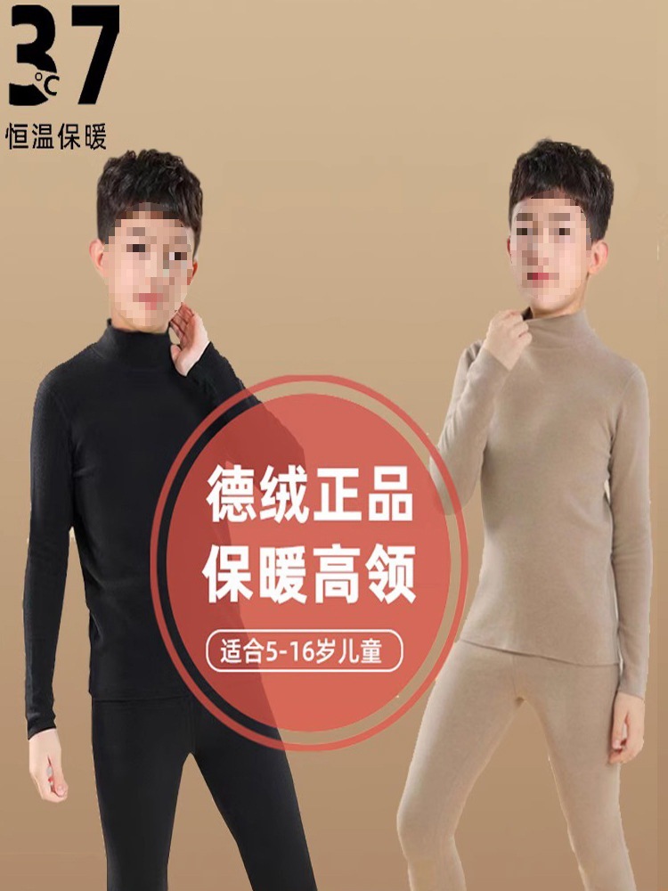 ملابس داخلية حرارية مخملية ذات ياقة مدورة للأطفال ملابس خريف وشتاء قطيفة ناعمة للأطفال ملابس خريف متوسطة وكبيرة سراويل طويلة للأولاد بدون خياطة