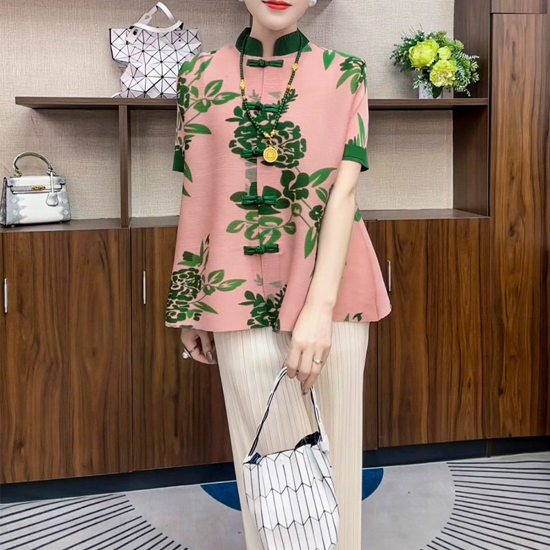 انفجارات! جيا نينغ موضة الصيف الجديدة الأنيقة كل مباراة المرأة الرجعية الصينية الجديدة مشبك تي شيرت بأكمام قصيرة