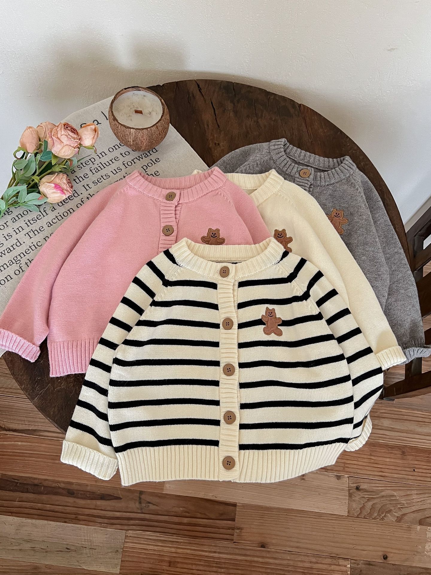 كوريا الجنوبية ملابس الأطفال الربيع والخريف لطيف الدب سترة مطرزة سترة الأطفال سترة محبوكة عادية بأكمام طويلة