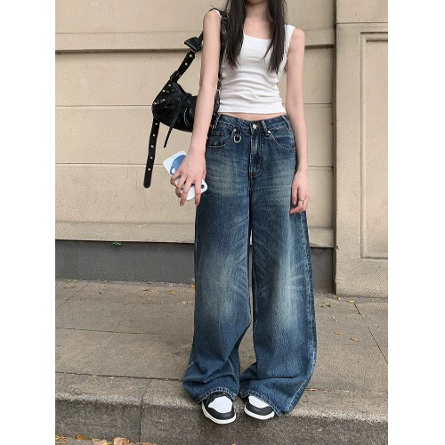 Kumikumi على طراز أمريكان غسيل دنيم عريض الخصر عريض الساق