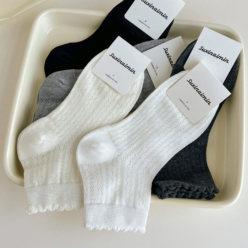Suxinaimin الباليه نمط JK الجوارب النسائية الصيف رقيقة تنفس نمط مياو العظم جوفاء الدانتيل الجوارب القصيرة