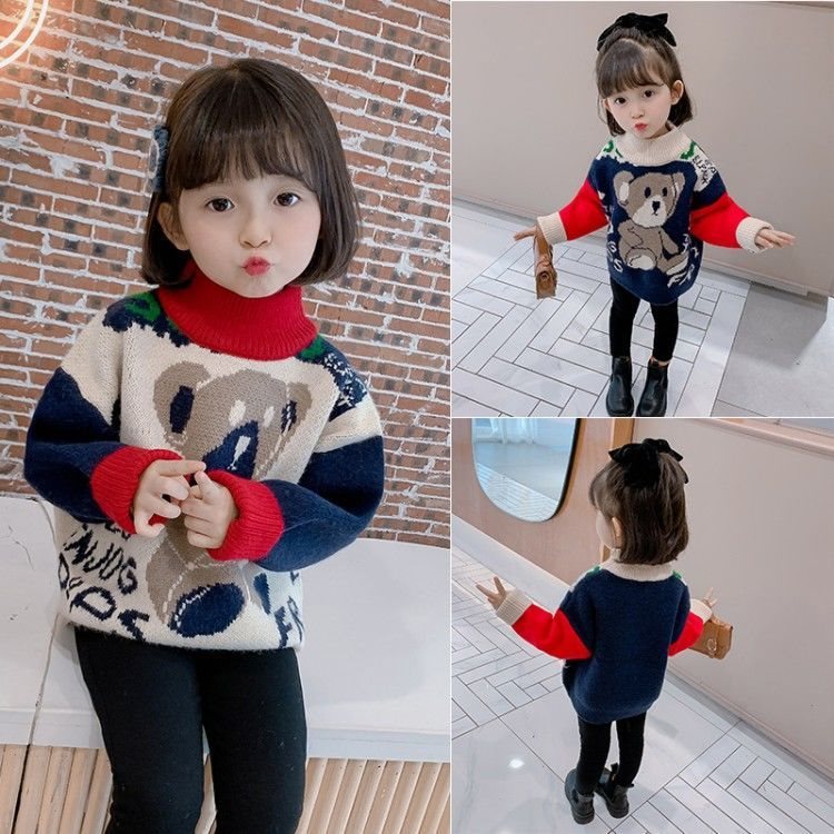 بلوفر للفتيات 2022 خريف النمط الغربي للأطفال الأوسط والصغير كوري برقبة مستديرة قميص أساسي محبوك للأطفال عصري