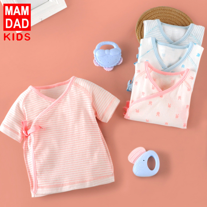 ملابس داخلية قطنية لحديثي الولادة للربيع والصيف بعمر 0-3 أشهر وحزام قطني وملابس راهب ملابس داخلية للأطفال حديثي الولادة مكونة من قطعتين