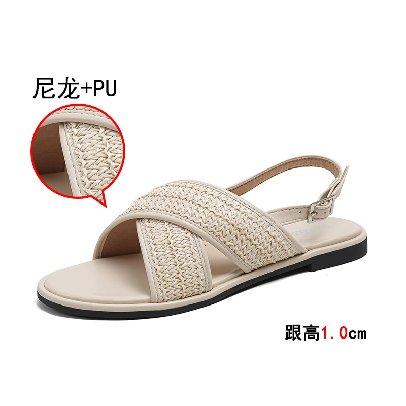السحب البارد المسطح ، العشب الصغير العبق ، أوقات الفراغ الخارجية يرتدي صندلًا فرنسيًا ناعمًا الصيف روماني كبير الحجم النسائي أحذية 41 إلى 43