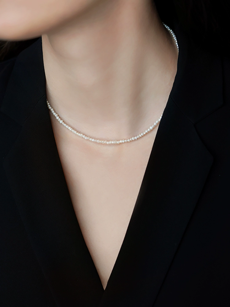 فيشي Natural Freshwater Pearl Necklace Women’s Silver Silver Millet Pearl Terlarbone Chain Neglasm Neglasm Light Luxury New Model