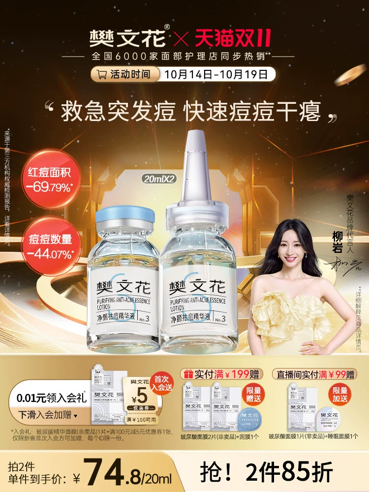 مروحة Wenhua رقم 3 جوهر مكافحة الحامض حمض الساليسيليك المنعش وإزالة حب الشباب السريع ، والبقاء مستيقظا وحب الشباب المتجر الأصيلة