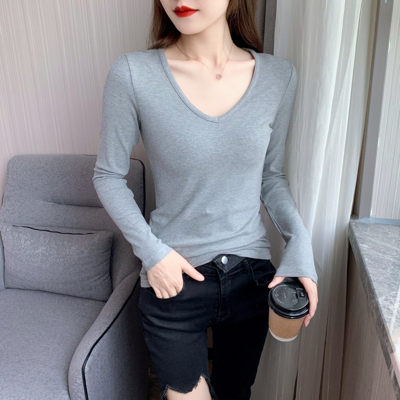 قميص أسود قاع ملابس داخلية نسائية نمط جديد خط عنق كبير النمط الغربي قميص طويل الأكمام أوائل الخريف طوق ضيق أعلى