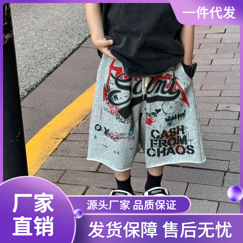 Tairu 2024 صيف جديد وصول الكورية نمط الأولاد الموضة العصرية كول كل مباراة الكتابة على الجدران سراويل تقليدية الأطفال السراويل العصرية