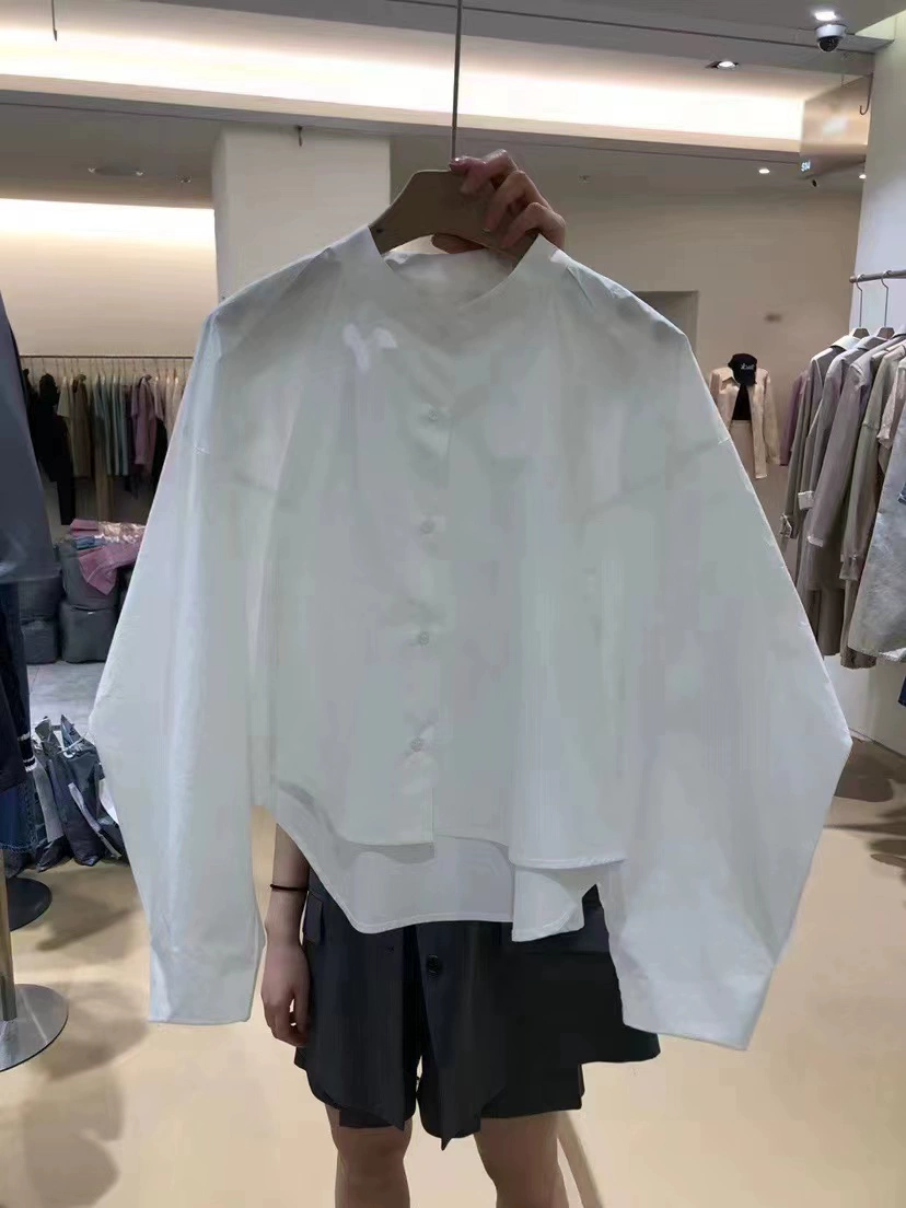 Dongdaemun ملابس الربيع الكورية المتخصصة قميص أزرق فضفاض