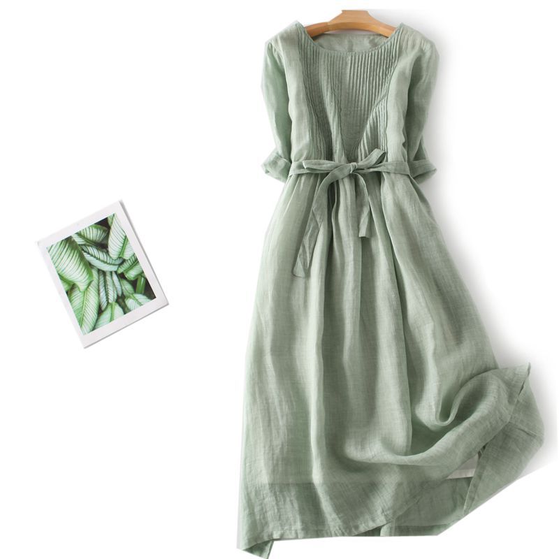 2023 صيف جديد خمر فضفاض الدانتيل متابعة سبع نقاط كم فستان طويل التخسيس بلون جديد فستان للنساء