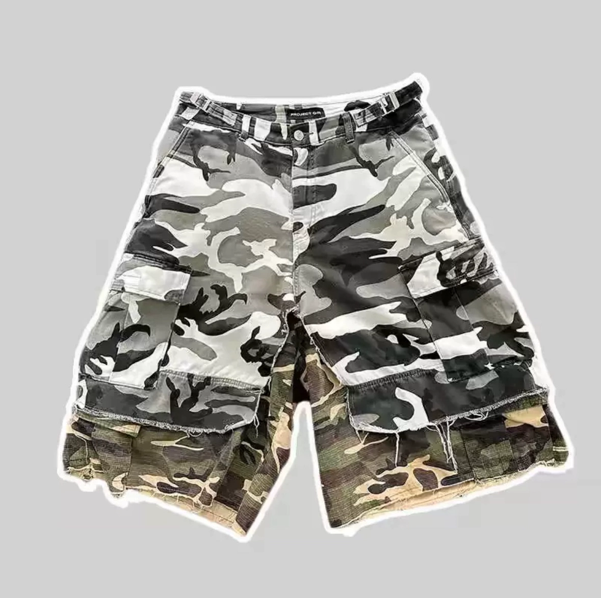 Grailz Project سراويل قصيرة مموهة بطبقة مزدوجة مموهة مكونة من قطعتين سراويل قصيرة فضفاضة أمريكية كلاسيكية كورية