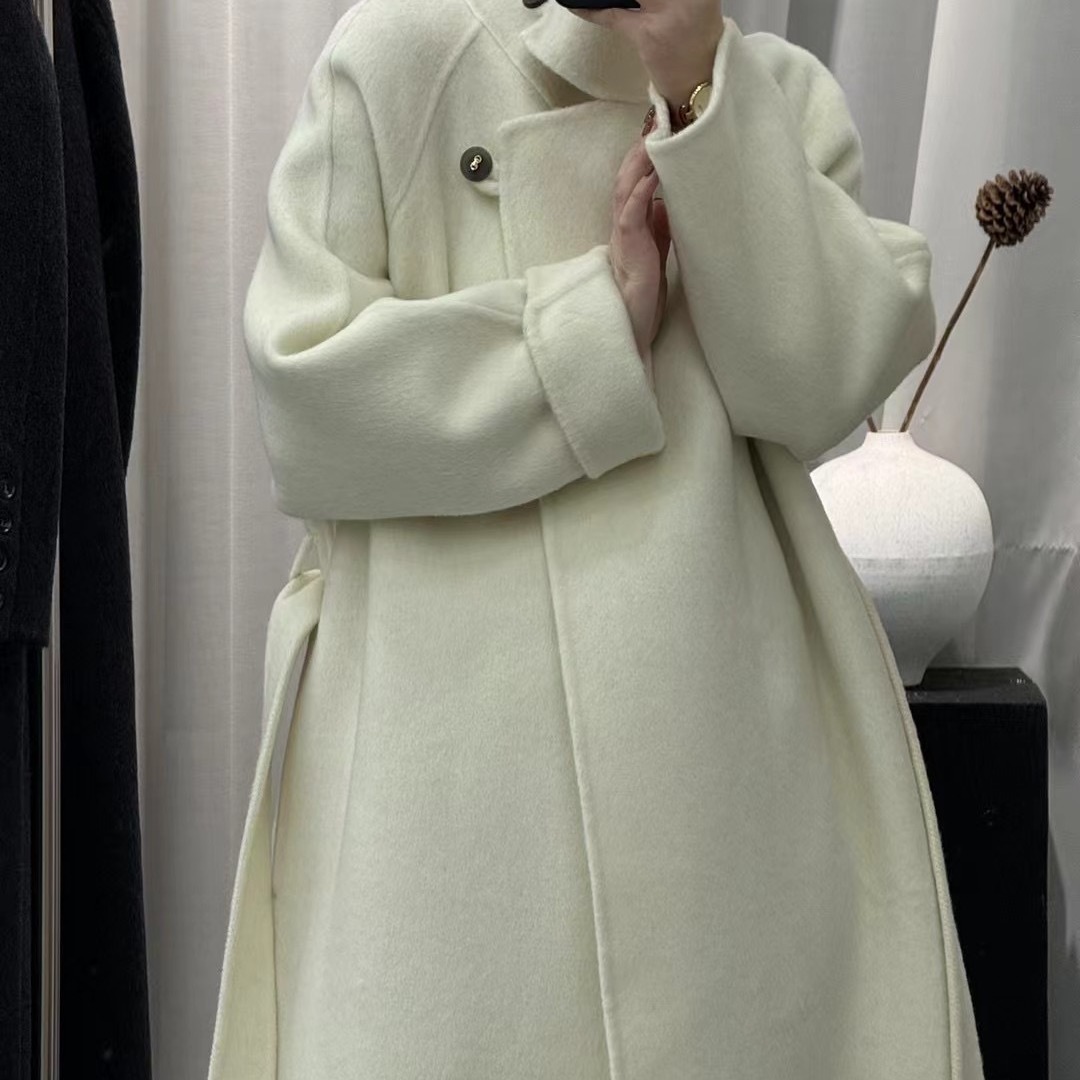 الراقية على الوجهين معطف من الكشمير طويل الوقوف طوق طويل الصوف سميكة حزام دافئ H-نمط الصوف على الوجهين معطف الصوف