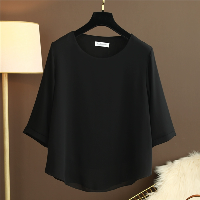 شيفون خياطة قصيرة الأكمام تي شيرت المرأة 2024 صيف جديد عصري أنيق وهمية قطعتين قمة الموضة النسائية النمط الغربي