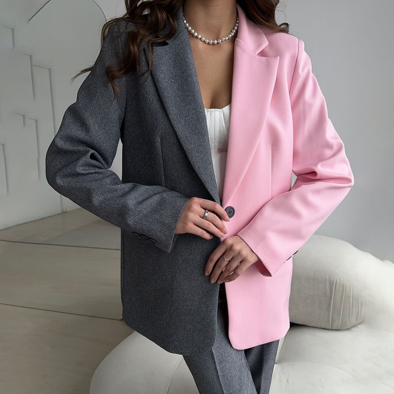 بدلة نسائية بألوان متباينة من Design Sense لخريف 2024 بدلة نسائية جديدة فضفاضة غير رسمية تناسب جميع الأعمار بدلة أنيقة راقية للنساء
