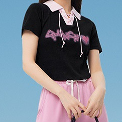 قميص بولو نسائي قصير مطرز حلو رائع ريترو صيفي نمط جديد صغير للرجال لون متباين علوي ضيق أمريكي آخر