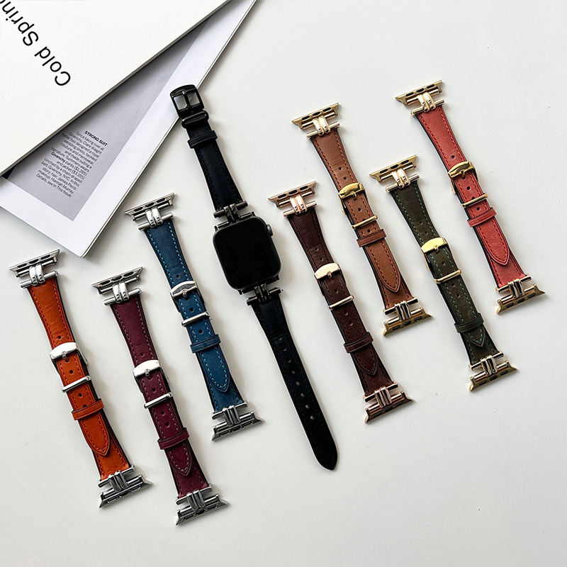 مناسبة لساعة Apple الجيل 1-8 بحزام مزدوج الأنبوب المعدني موصل بحزام جلدي وحزام المعصم