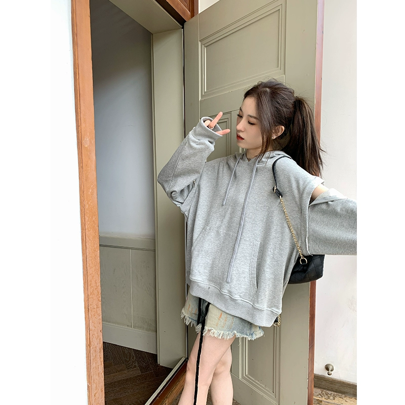 قمة أنيقة بغطاء للرأس بتصميم فضفاض مخصص للخريف
