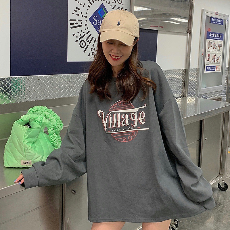 BF نمط فضفاض منتصف طول طالب طويلة الأكمام البلوز المرأة 2023 الربيع والخريف رقيقة طالب البلوز رسالة قميص مطبوع