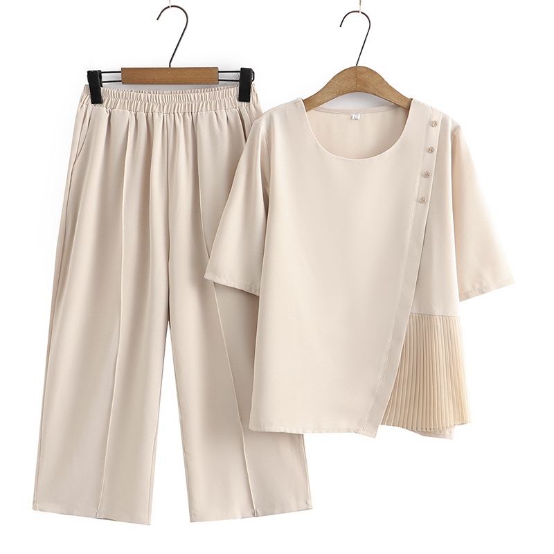 بدلة صيفية للأم مزاج أجنبي طقم مكون من قطعتين في منتصف العمر وكبار السن تي شيرت نسائي بأكمام قصيرة موديل جديد 2024