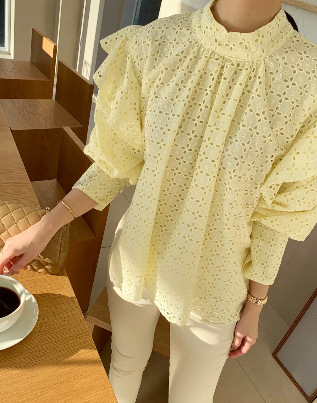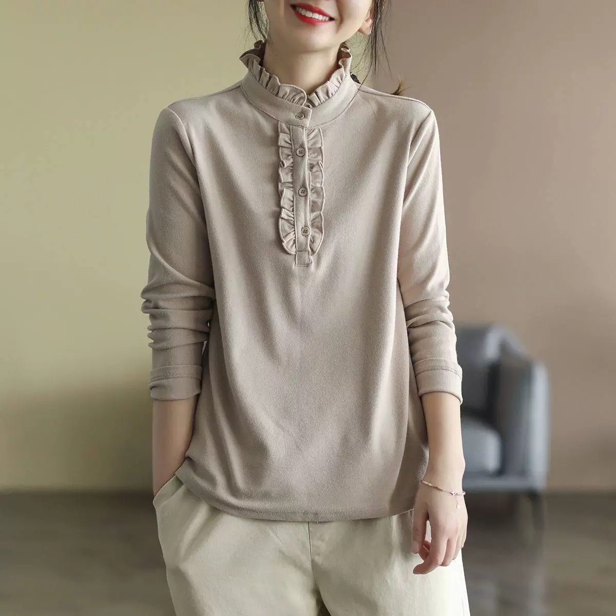 تي شيرت طويل الأكمام ، قمة فضفاضة مع آذان