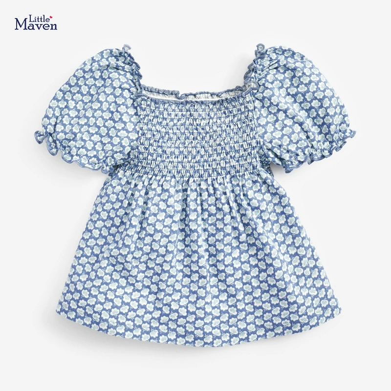 تنورة قطنية مطوية على شكل فقاعات، تنورة مريحة متوسطة الطول بنقشة الزهور المنعشة للنساء