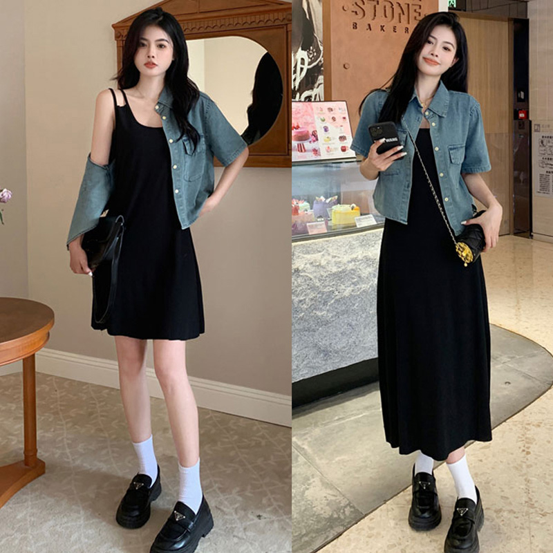 فستان نسائي من قماش الدنيم التنحيف الذي يغطي الجلد