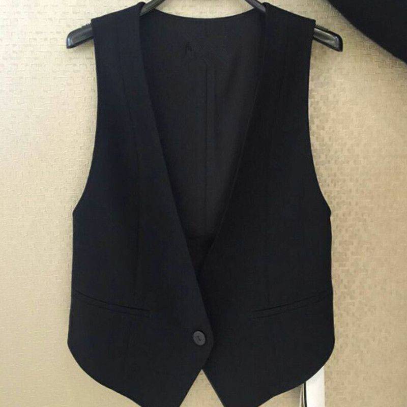 سترة جديدة 2024 للربيع والصيف والخريف قصيرة سوداء بزر واحد بدون أكمام وخصر قصير وفتحة رقبة على شكل حرف v