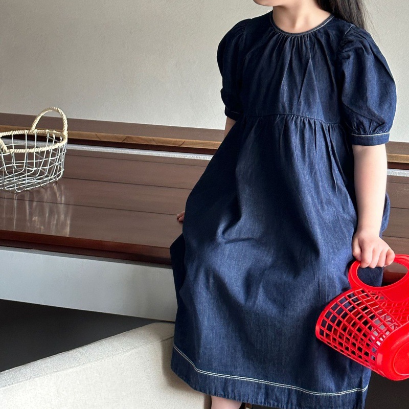 ملابس أطفال كوريا الجنوبية 2024 أزياء الفتيات الصيفية الكورية الصغيرة والمتوسطة الحجم للأطفال مزاجه فانوس كم رقيقة فستان الدنيم تنورة الأطفال