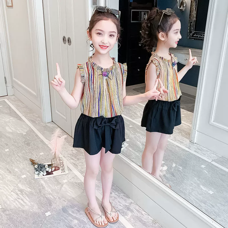 السراويل الفتيات ملابس الصيف الصيف رقيقة كبيرة للأطفال الصيف ايوسل بنطال ذو قصة أرجل واسعة جينز أطفال صيفي أنيق عصري