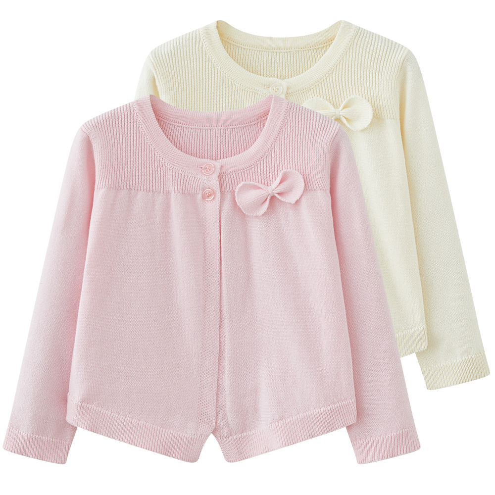 2024 النسخة الكورية من سترة محبوكة للأطفال الصغيرة والمتوسطة الحجم القطن القوس الفتيات شال صغير تكييف الهواء قميص جيل من الشعر