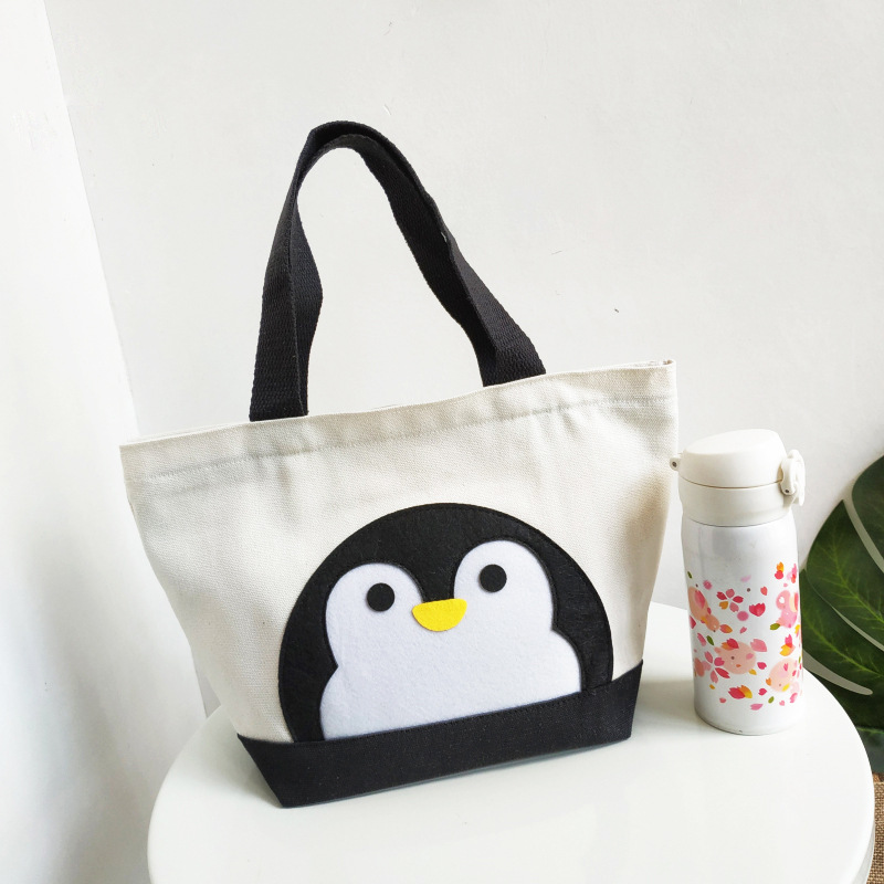 تخصيص الأصلي سوبر لطيف البطريق نمط أبيض وأسود الربط قماش الغداء حقيبة الغداء مربع حقيبة يد حقيبة تسوق