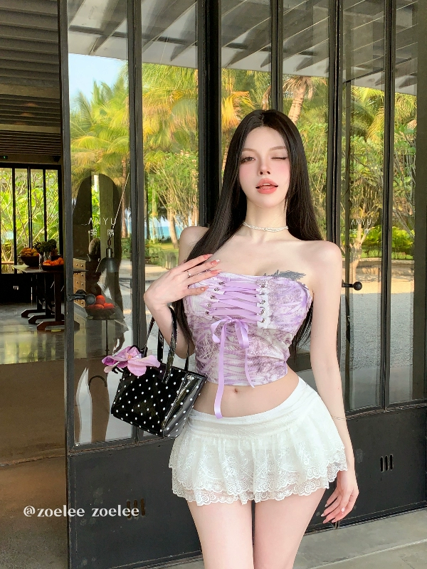 الجزء العلوي ذو الأربطة الأرجوانية مثير يمكن ارتداؤه خارج الجزء العلوي من الأنبوب