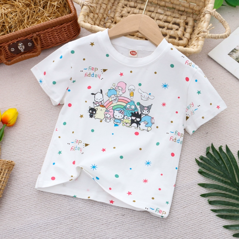 الفتيات القطن الخالص الكرتون قصيرة الأكمام تي شيرت الصيف رقيقة تنفس الأطفال فتاة صغيرة طفل قاع قميص نصف كم