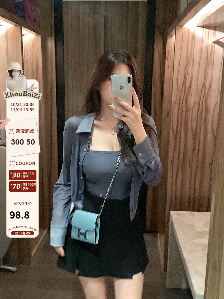 J22TP189 قميص نسائي أوروبي وأمريكي جديد موضة ربيع 2023 بخصر معدني قميص قاع مثير للبيع بالجملة