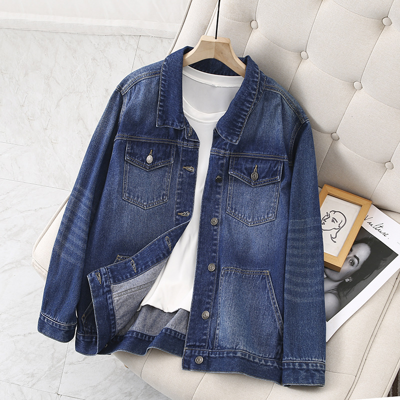 سترة نسائية أنيقة من قماش الدنيم بتصميم كلاسيكي عتيق لخريف 2023 للسيدات بخصر عالٍ متوسط الطول فضفاض بنمط كوري مقاس كبير