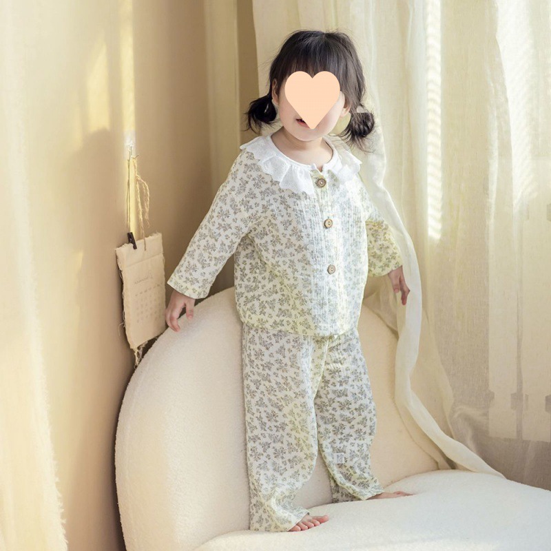 بيجامة صيفية رقيقة من القطن للربيع والخريف للفتيات بأكمام طويلة وخيوط قطنية للأطفال مناسبة لتكييف الهواء ملابس منزلية للأطفال