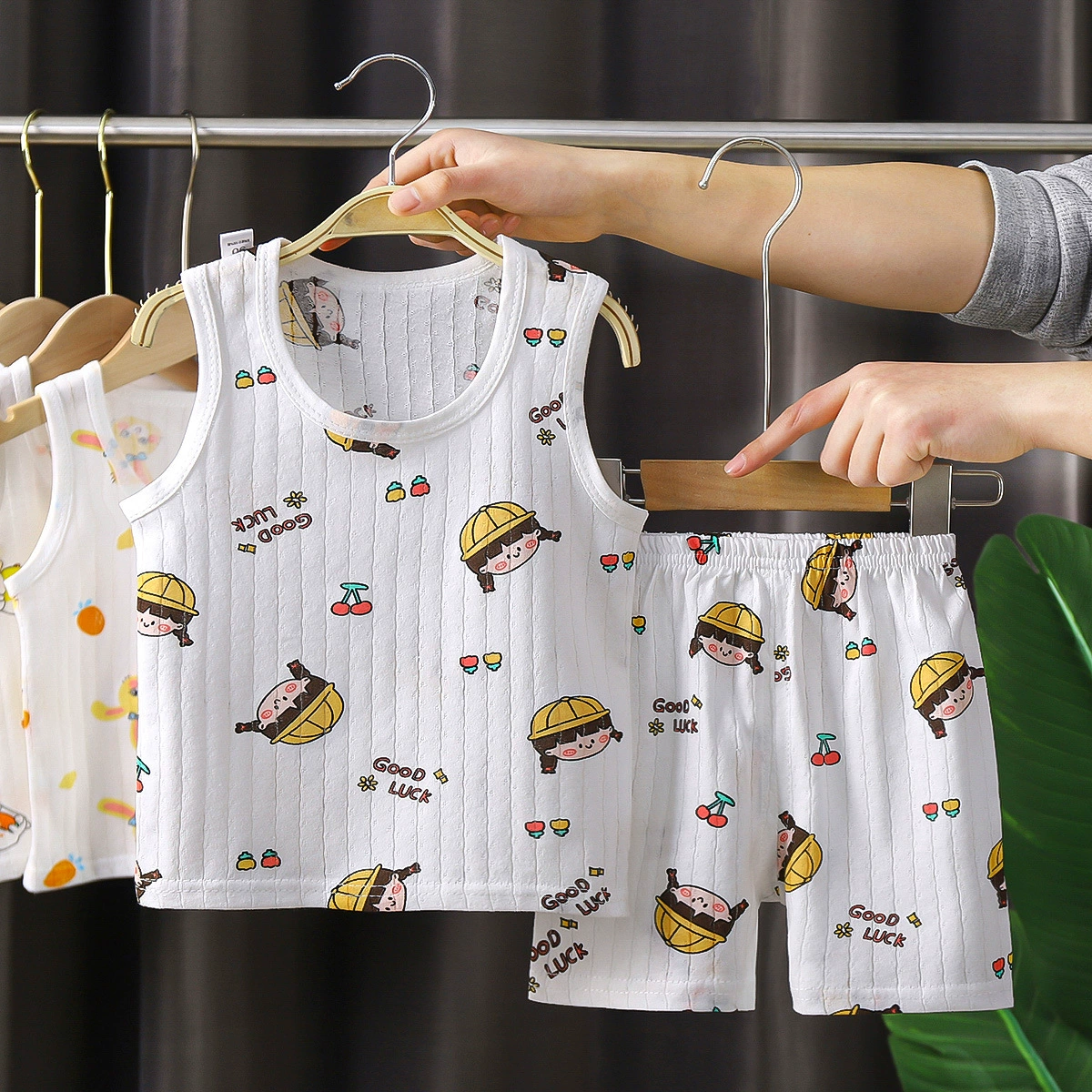 مجموعة سترة الأطفال الصيف القطن الخالص رقيقة الفتيات السراويل ملابس الطفل الكورية نمط الأولاد بلا أكمام ملابس الأطفال من قطعتين