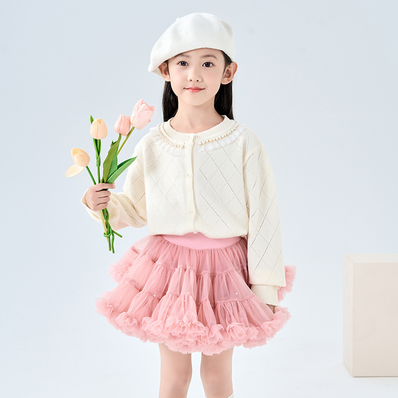 ورقة الملابس 23 الخريف سترة محبوكة جديدة للأطفال سترة اللؤلؤ طوق سترة الفتيات عارضة تسليم قطعة واحدة