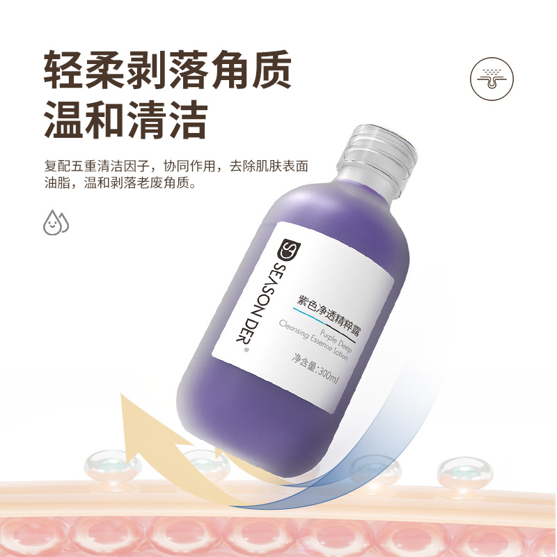Jidai Purple Cleansing Essence Dew ينظف البشرة بلطف، منعش، غير لزج، تركيبة مائية، منظف جوهري.