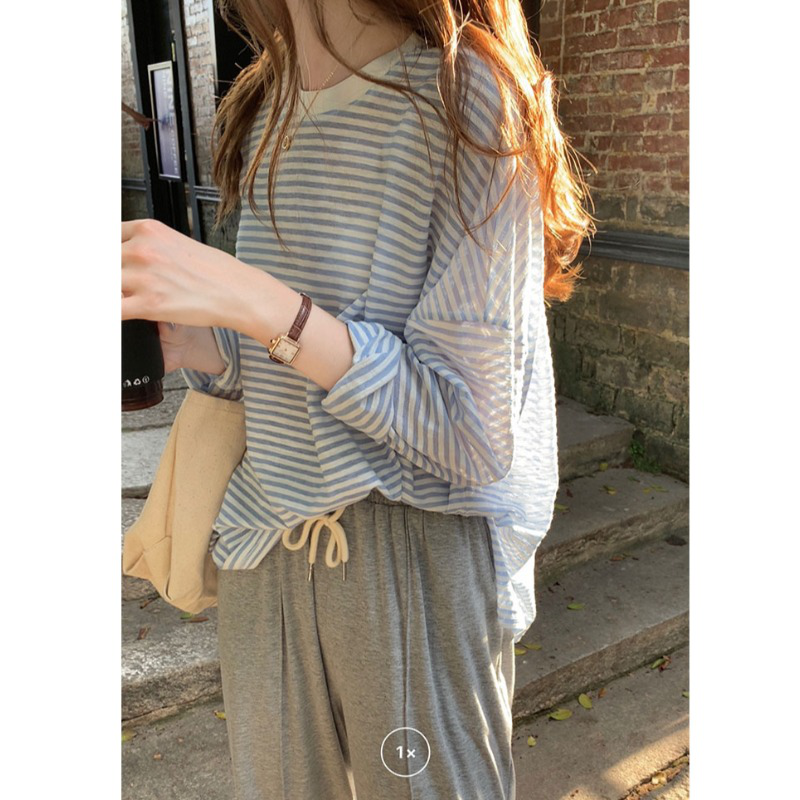 زرقاء مخططة رقيقة طويلة الأكمام الطويلة