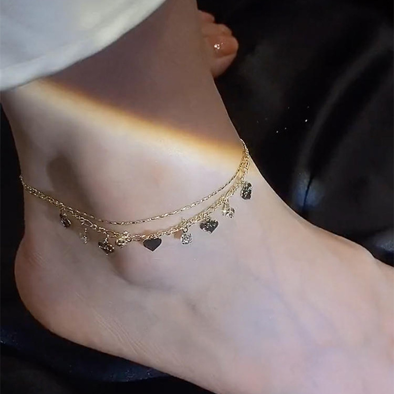 أوروبا والولايات المتحدة الخفيفة الفاخرة مكدسة ارتداء الحب الترتر خلخال المتخصصة شخصية خلخال صافي الأحمر مع المجوهرات الراقية النساء بالجملة