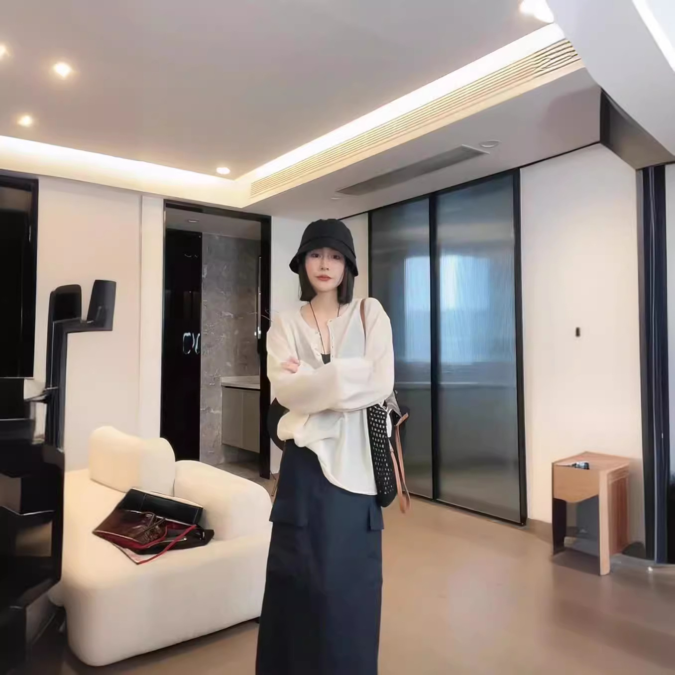 سترة نسائية قصيرة من قماش الدنيم بأكمام واسعة لربيع 2024 بتصميم جديد ونمط جامعي وسترة كورية فضفاضة