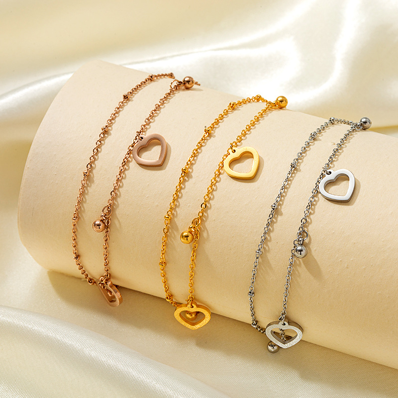 مزاجه المرأة مزدوجة على شكل قلب جرس الأفعى العظام خلخال الاتجاه شخصية المجوهرات بقعة خلخال التيتانيوم الصلب بالجملة