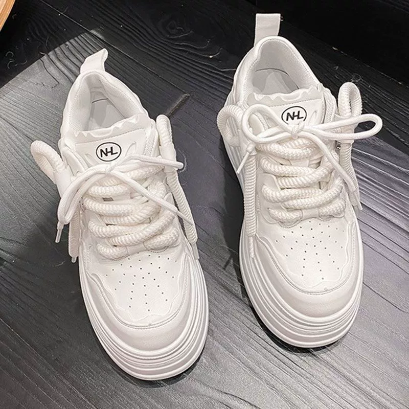 محطة أوروبية بارتفاع زنبركي نعل سميك 8 سم يزيد من الأحذية البيضاء