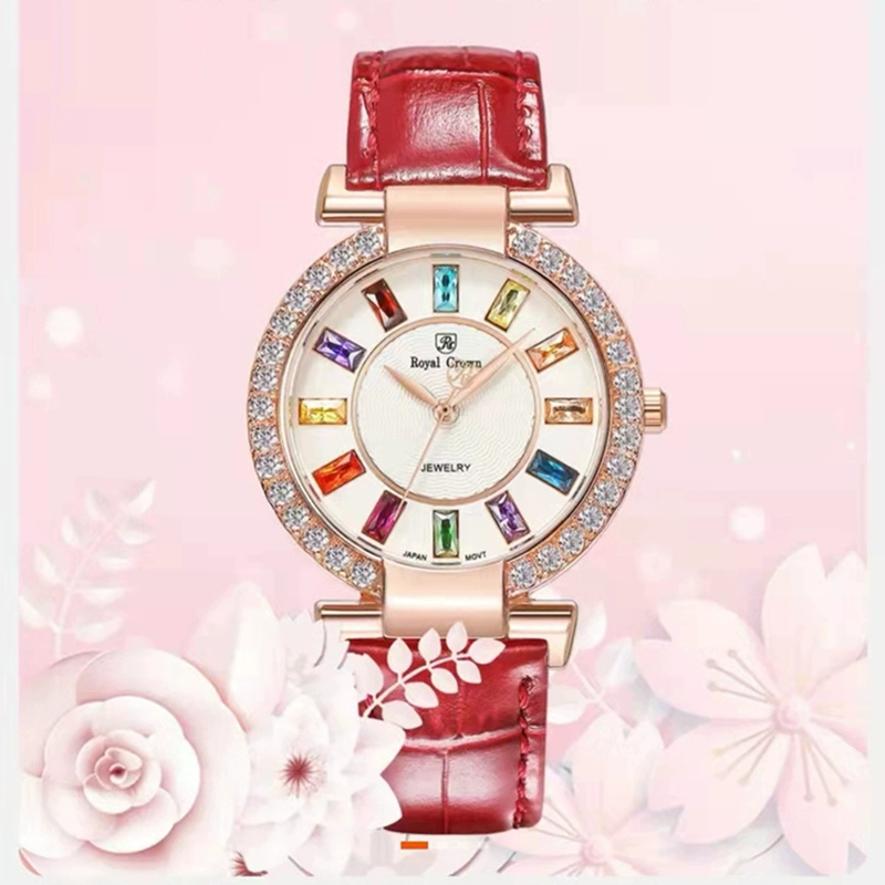 ساعة هدية من Royalcrown بحزام ساعة مستديرة من حجر الراين الماسي ساعة كوارتز عصرية للأعمال 4604