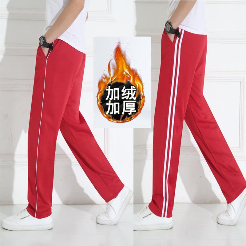 طلاب المدارس الابتدائية الخريف والشتاء بالإضافة إلى السراويل الموحدة المخملية مبطنة شريط السراويل طلاب المدارس الإعدادية السراويل المدرسية ذات الحواف البيضاء السراويل الرياضية الحمراء